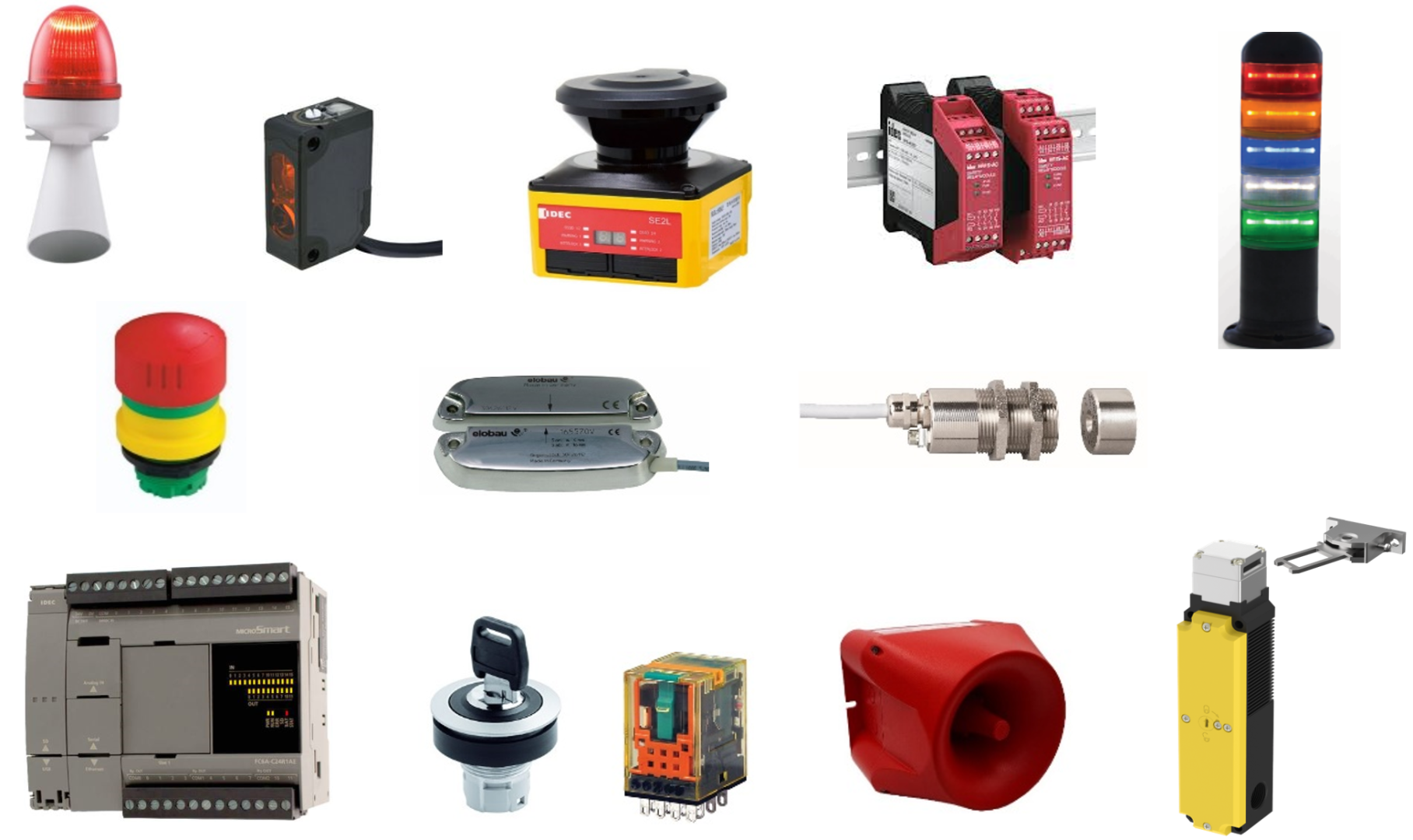 חיישני בטיחות, ממסרי ובקרי בטיחות, סורקי לייזר Laser Scanner, וילונות, פסי לחץ, אמצעי התרעה קולית וחזותית ומשבטים.